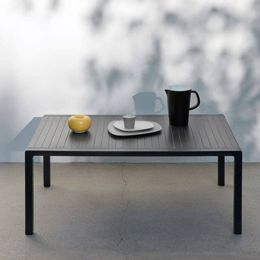 La Mesa Aria 100 de Nardi tiene las siguientes medidas: 100 cms de larga*60 cms de ancha. Tiene una altura total de 40 cms.